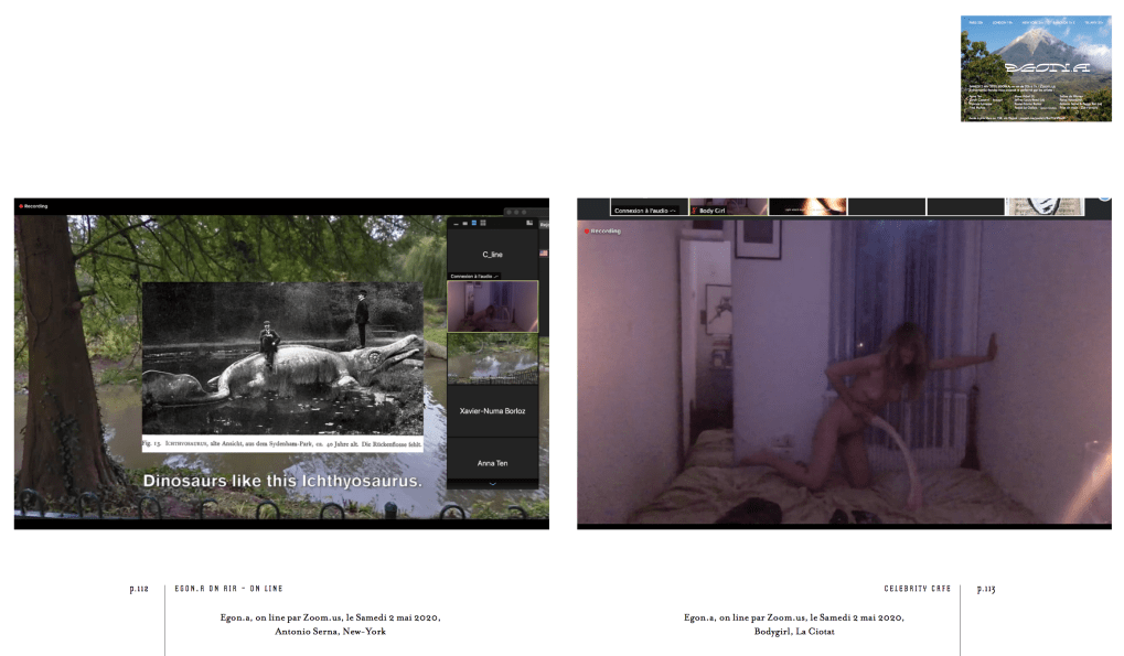 Parution dans la revue Celebrity cafe #04 au sujet de Egon.a online du 2 mai 2020. Pandémie et Lockdown et présentation de la revue et de Egon.a au Générateur.