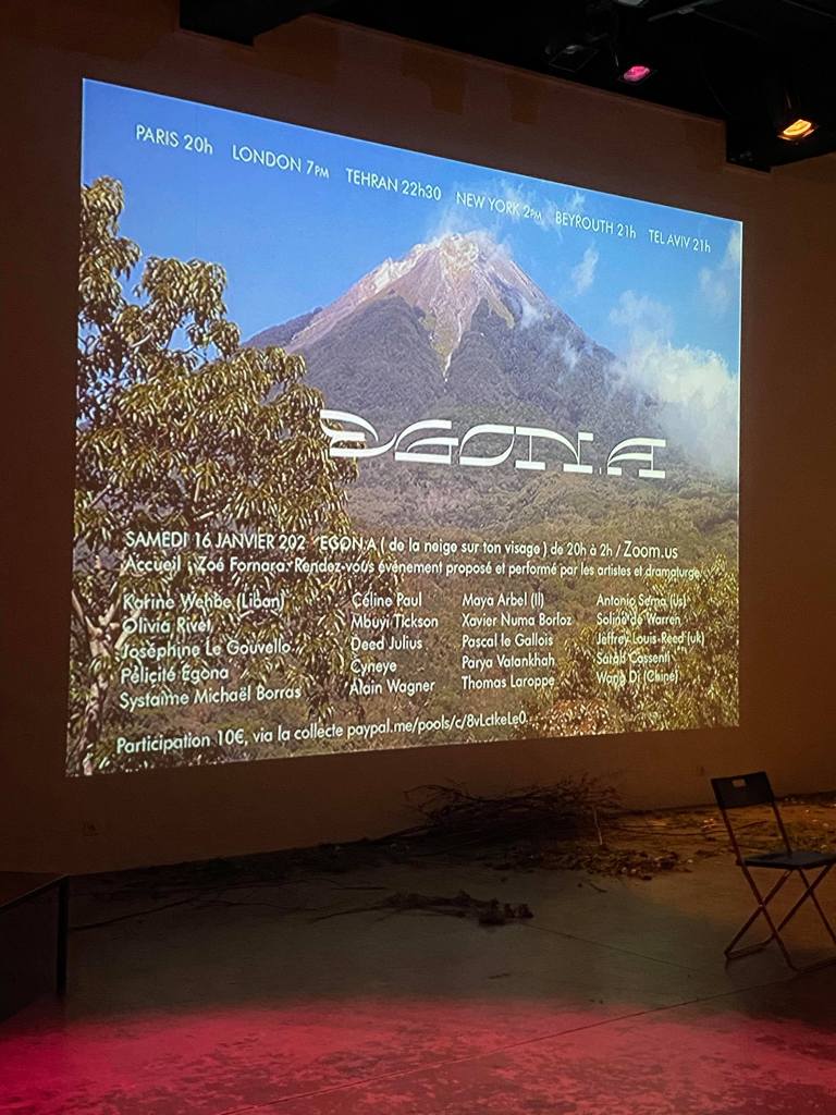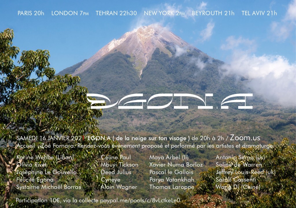 Egon.a ( de la neige sur ton visage ) a émis le Samedi 16 janvier 2021 de 20h à 2h du matin depuis l’intérieur du volcan via Zoom.us