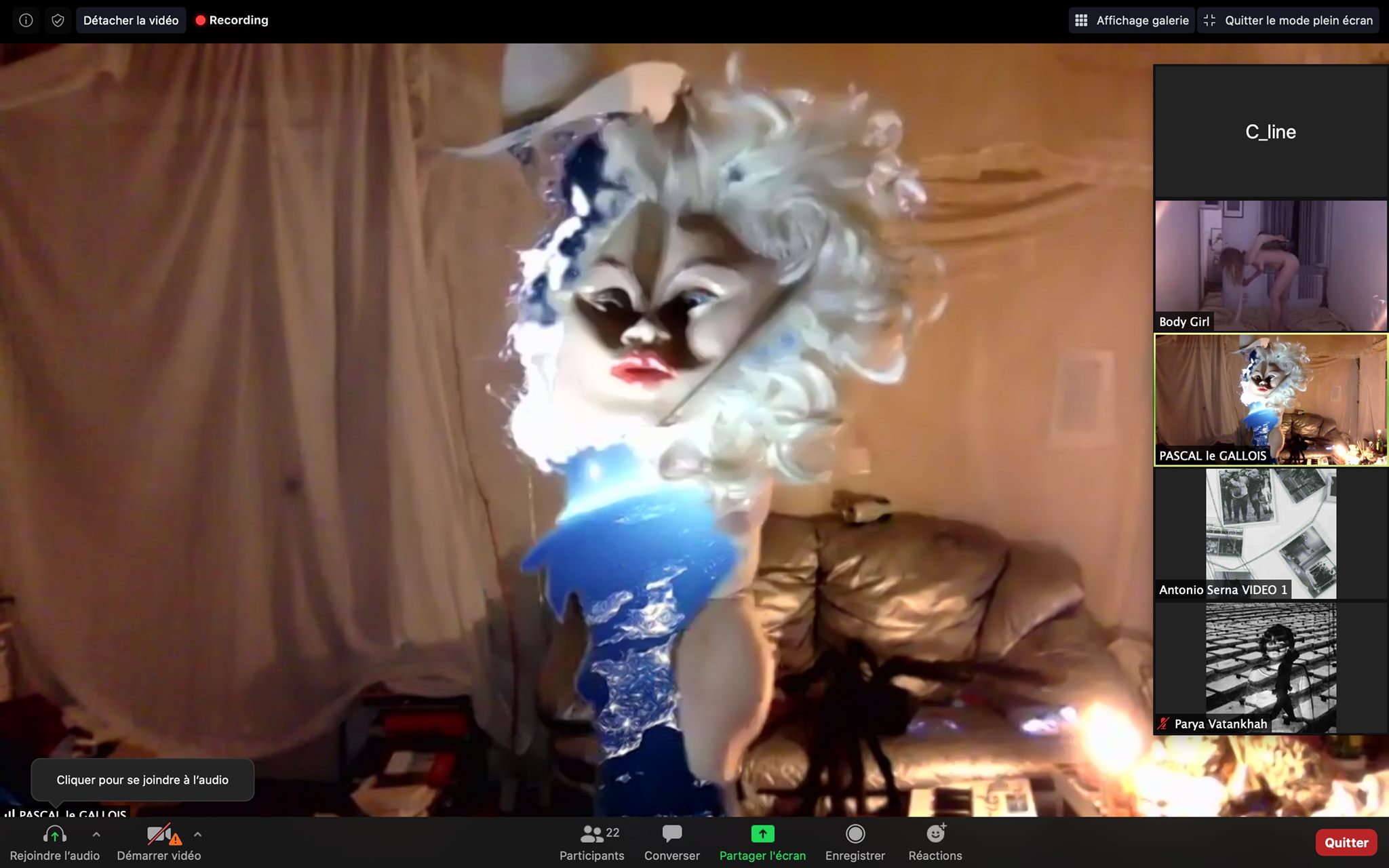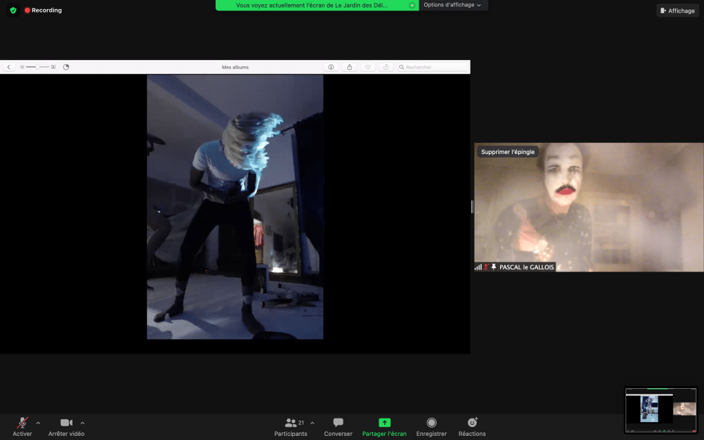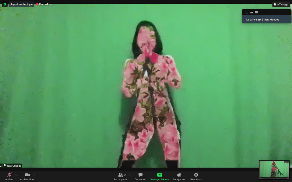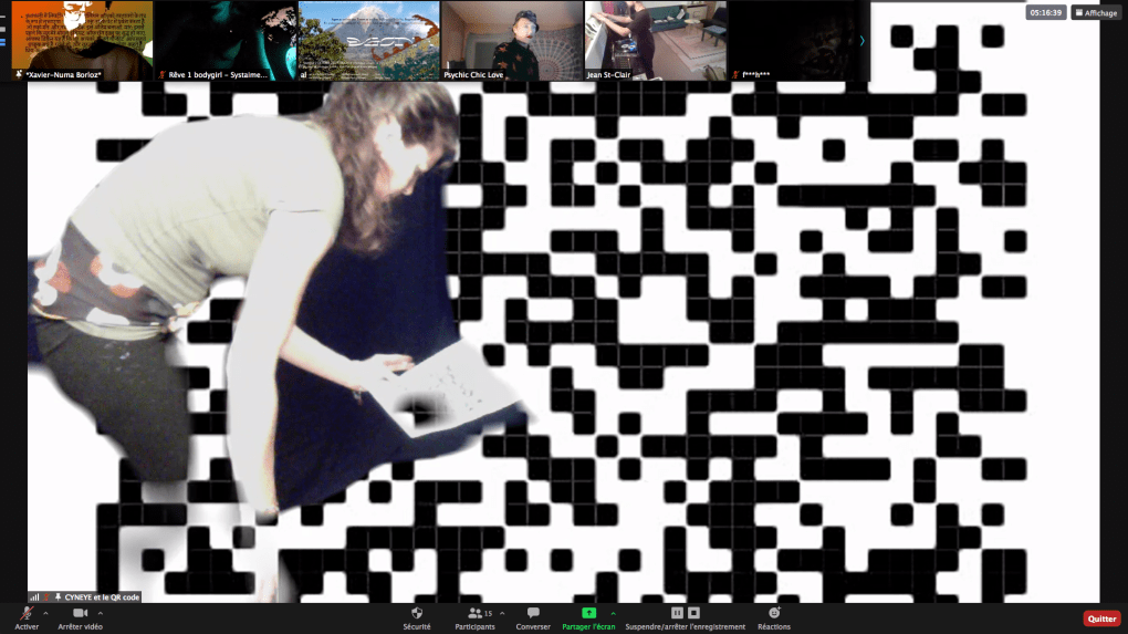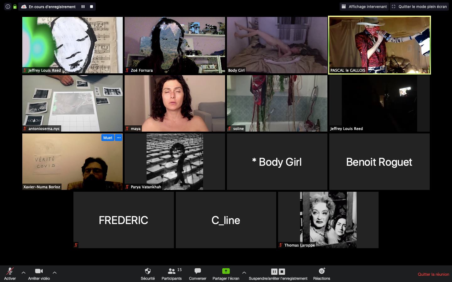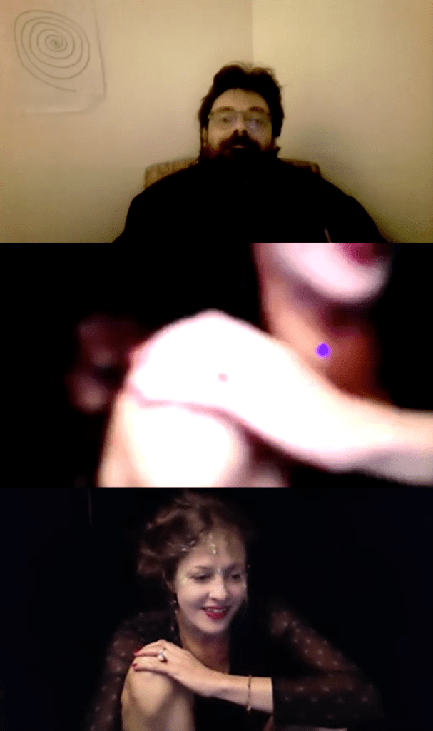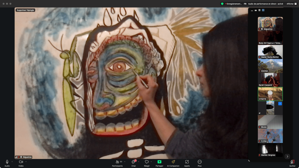 Evénement-Rendez-vous proposé par Sarah Cassenti et performé par les artistes : Anna Ten – Sarah Cassenti (première apparition de Bodygirl) – Parya Vatankhah, Xavier Numa Borloz – Thomas Laroppe – Fred Munoz – Maya Arbel – Jeffrey Louis Reed – Pascal le Gallois – David Coignard – Soline de Warren – Antonio et Peggy Tan. Accueil et Pilotage Zoom : Zoé Fornara