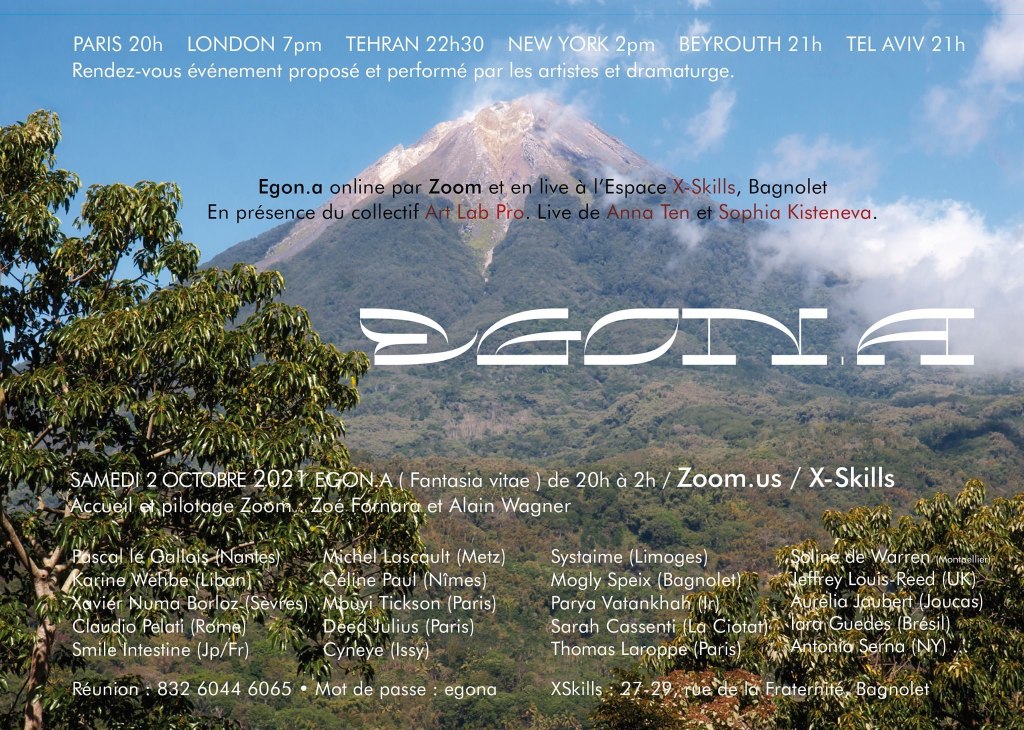 Egon.a ( Fantasia vitæ ) depuis l’intérieur du volcan, Samedi 2 octobre 2021 par Zoom, en co-dimension à l’Espace Xskills, Bagnolet, France