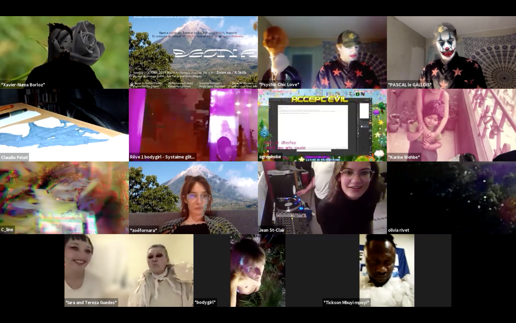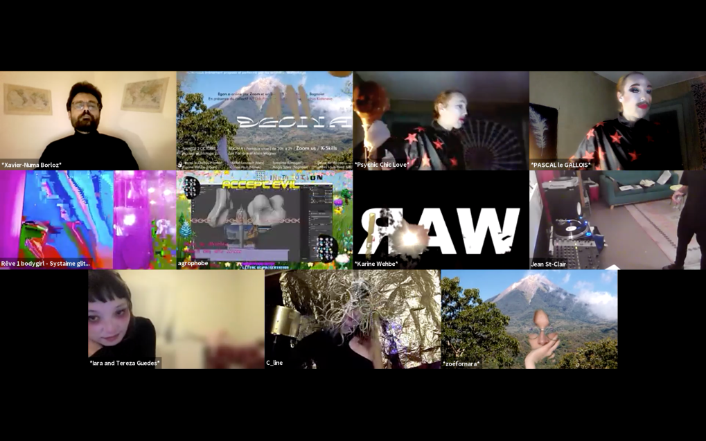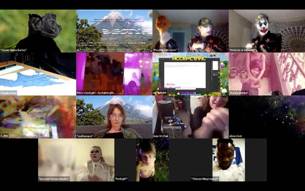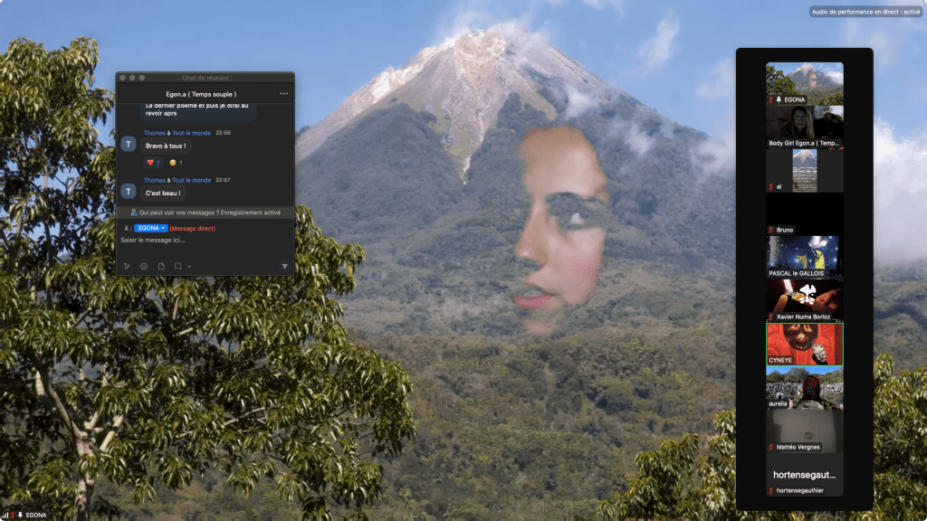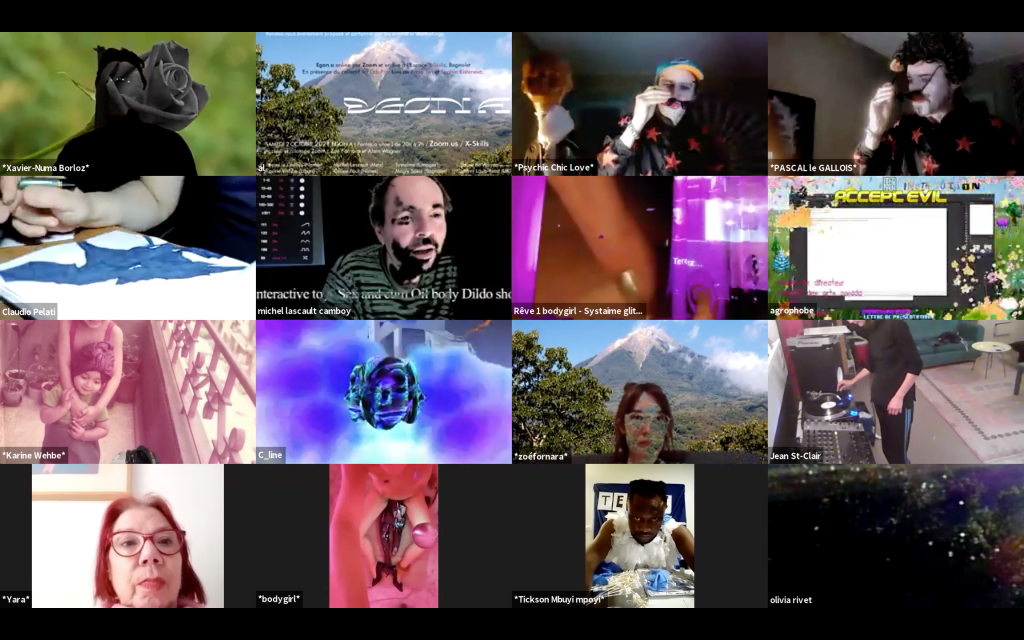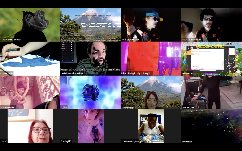 Egon.a ( Sacré.e ) Désirs continus a émis le Dimanche 1er novembre 2020 depuis l’intérieur du volcan via Zoom.us • Interventions en simultané de 21h à 2h du matin.