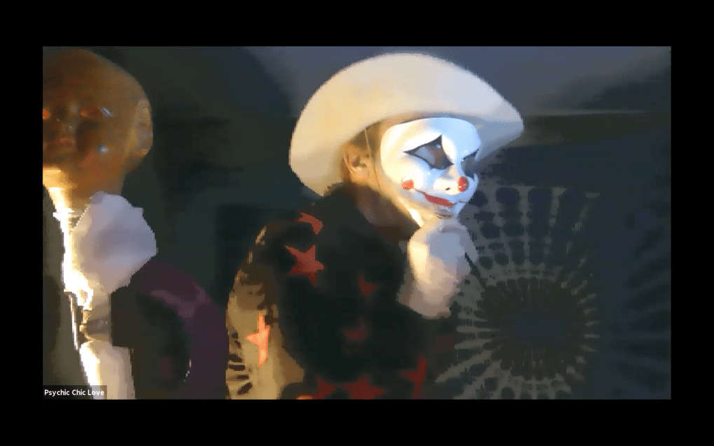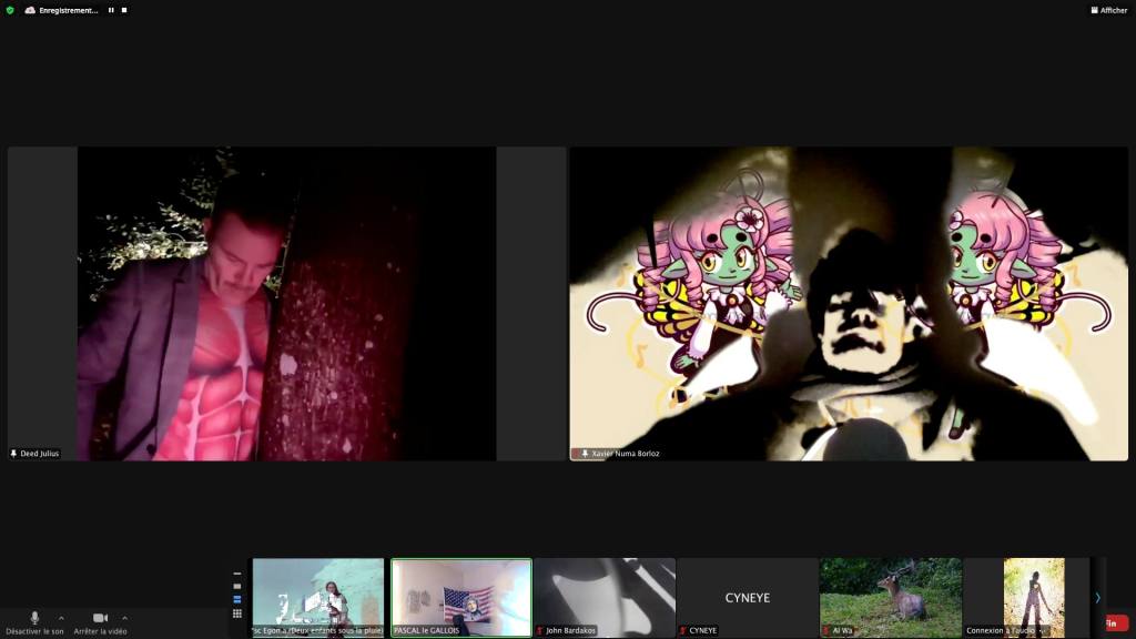 Evénement-Rendez-vous proposé et performé par les artistes : Sarah Cassenti (poupée blanche) – Xavier Numa Borloz – Thomas Laroppe – Maya Arbel – Jeffrey Louis Reed – Pascal le Gallois Soline de Warren. Accueil et Pilotage Zoom : Zoé Fornara