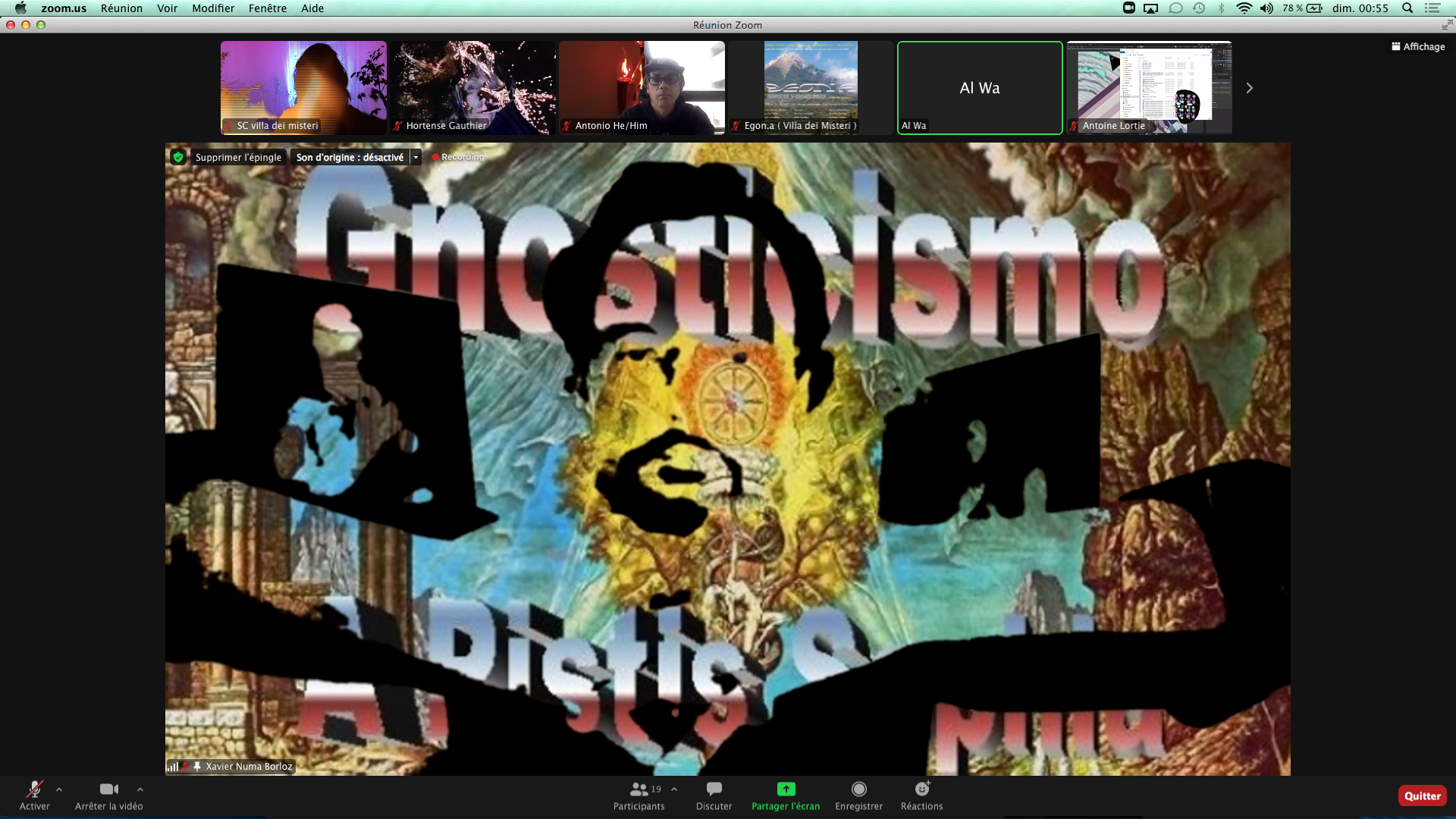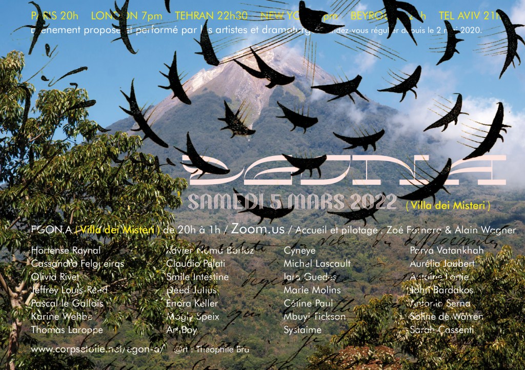 Egon.a ( Villa dei Misteri ) nous avons émis depuis l’intérieur du volcan, le Samedi 5 mars 2022 par Zoom de 20h à 2h du matin.
