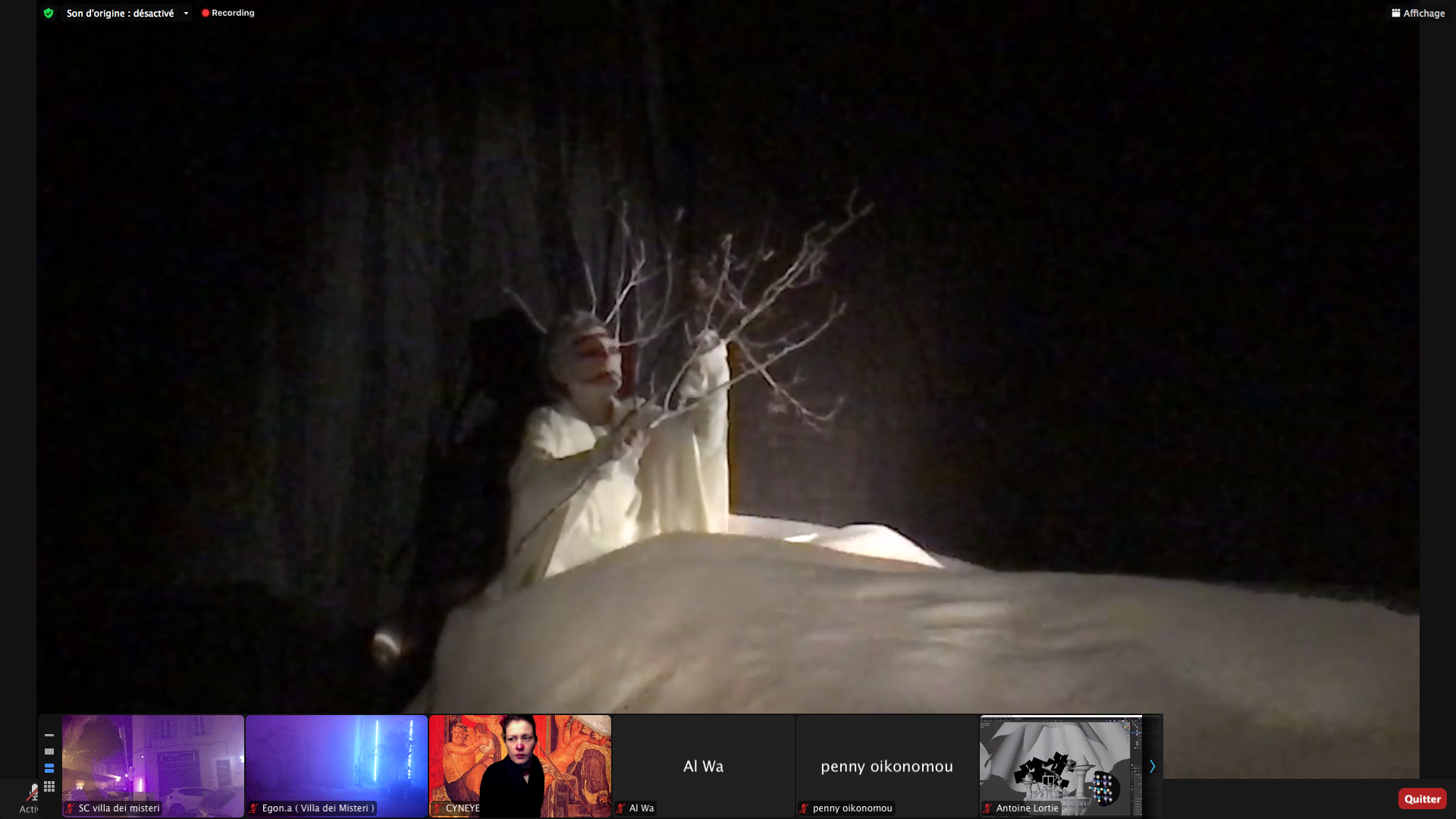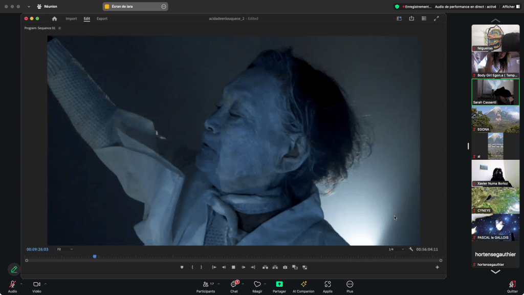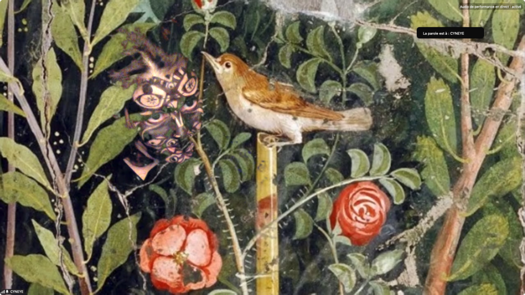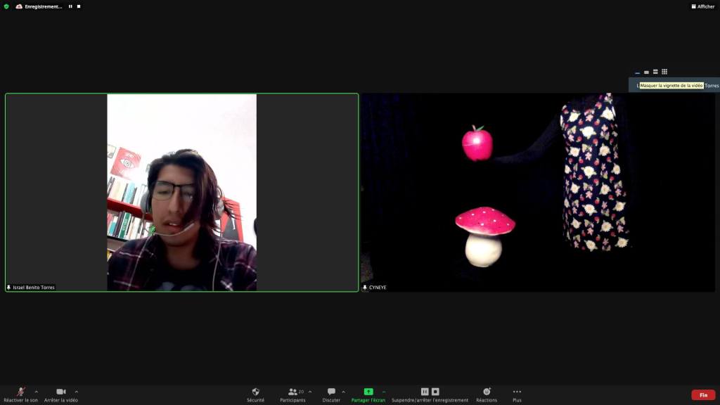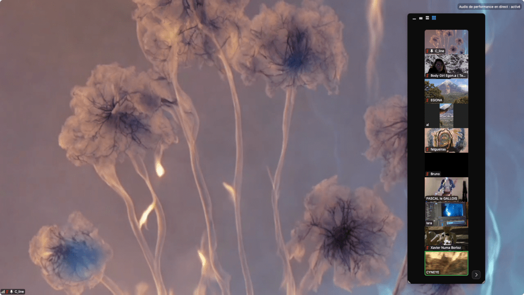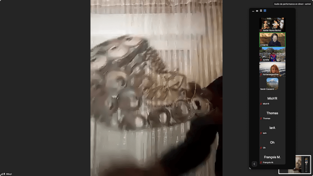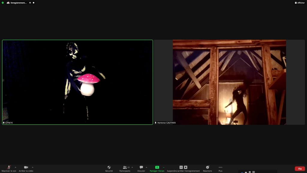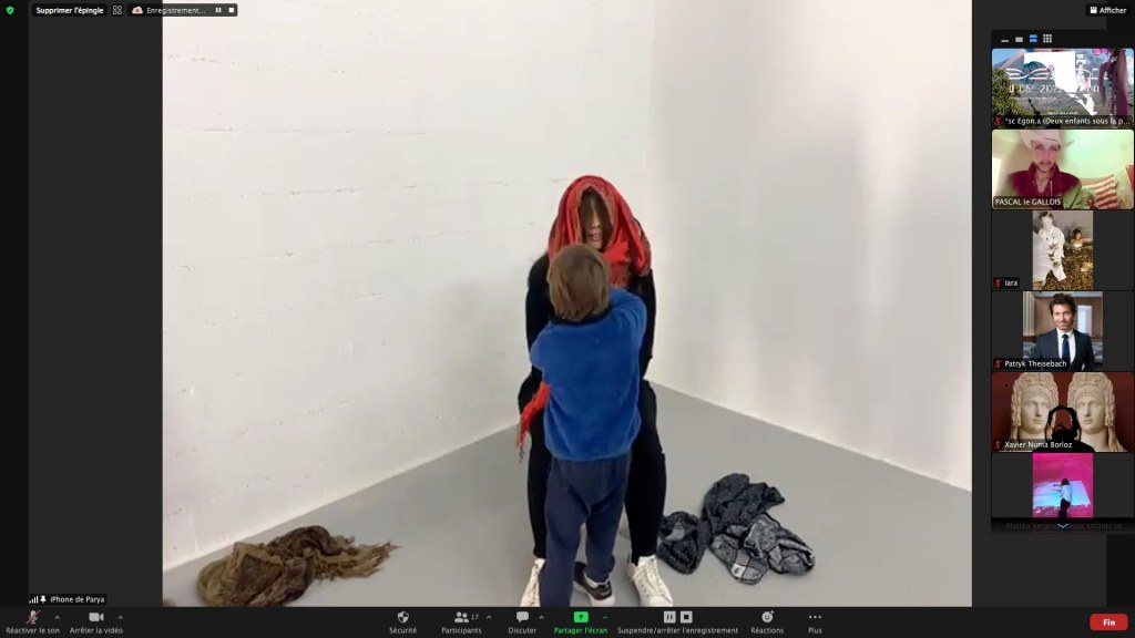 Captures de Cyneye • Egon.a (Sacré.e) • 1er NOV 2020 / ZOOm.us – Parya Vatankhah – Pascal le Gallois – Soline de Warren – Xavier-Numa Borloz – Jeffrey Louis-Reed – Cyneye – Thomas Laroppe et Jérôme Buisson – Sarah Cassenti / Aile Polina (on achève bien les chevaux)