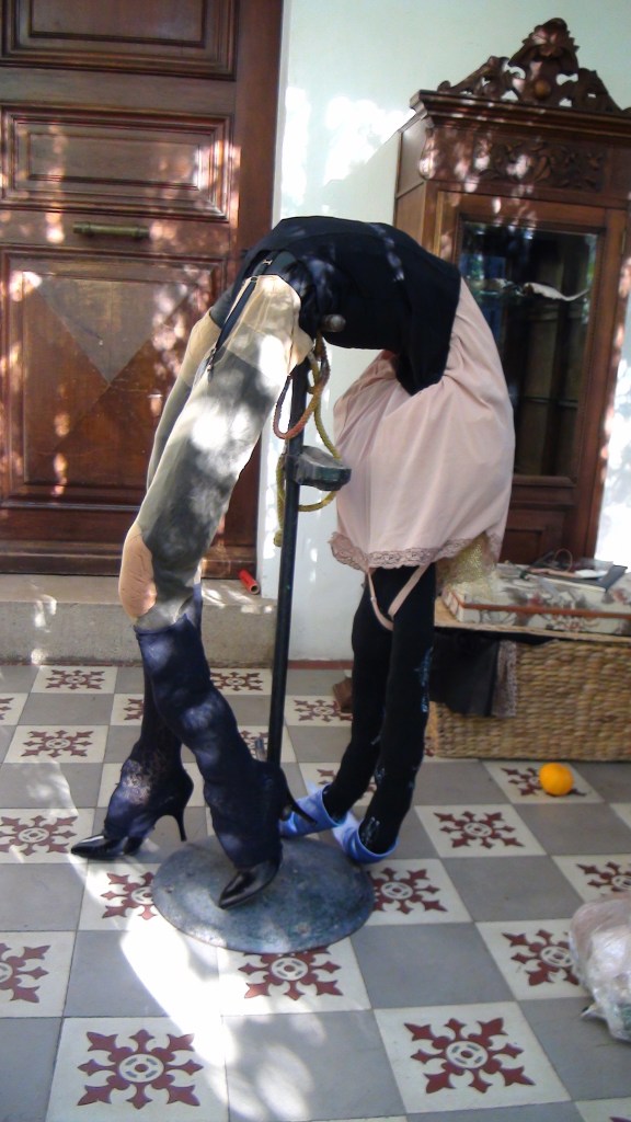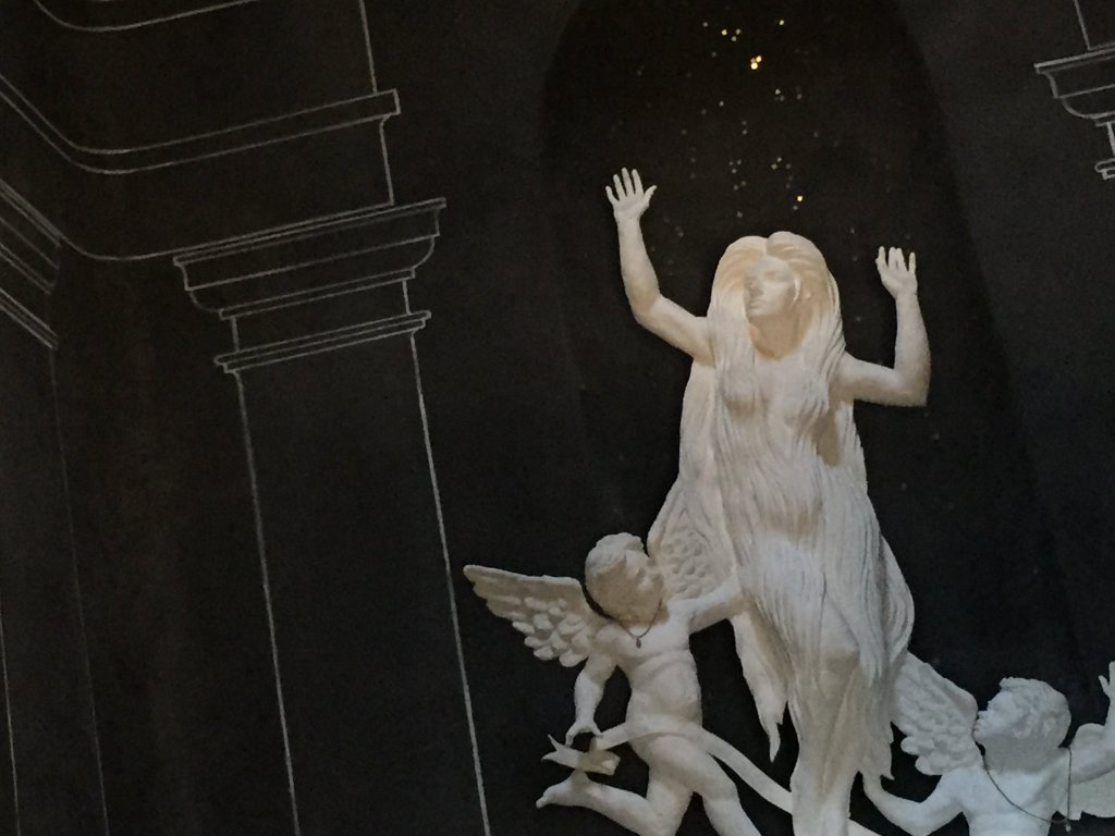 là où Marie Madeleine pleure, où elle a parlé de la tristesse avec laquelle elle a vécue, de sa tristesse, elle relâche – les mots qu’elle parle la transforment, ses cheveux longs glissent sur les pieds du x, chute d’eau lumineuse. Marie Madeleine n’a pas de visage, même pas de tête, Marie Madeleine danse tribale, elle lève le pied, ses anges enfantins autour la regardent, la relancent joyeusement.